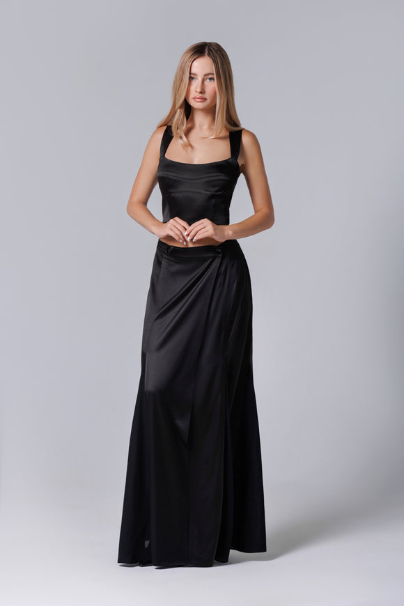 Schwarzer langer Rock aus Satin