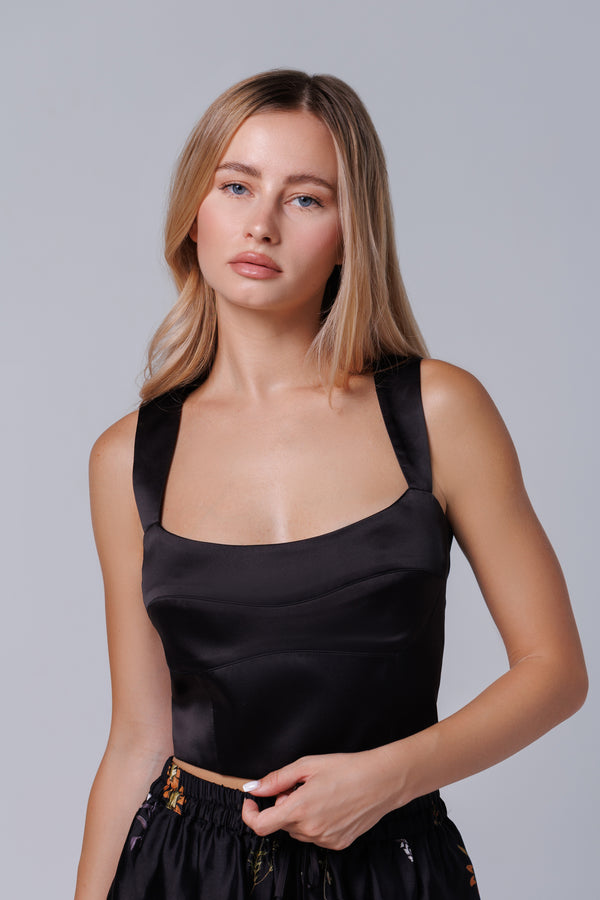 Schwarzes satiniertes Oberteil