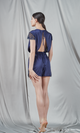 Marineblauer kurzer Jumpsuit aus feinem Satin, der Eleganz und Sinnlichkeit verbindet. Er hat einen großzügigen V-Ausschnitt, der mit zarter Spitze eingefasst ist und einen Hauch von Raffinesse verleiht. Die Taille ist mit einem Gummizug versehen, um die Silhouette zu betonen, und die Ränder der Shorts sind mit der gleichen Spitze versehen, so dass ein durchgehender und fließender Effekt entsteht. Dieses Kleidungsstück ist vielseitig und eignet sich für einen ruhigen Abend zu Hause oder einen legeren Abend im Freien.