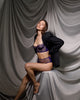 Entdecken Sie die Eleganz und Raffinesse unserer langen Linie Demi-BH mit prächtigen indigo Stickerei geschmückt. Dieses Stück ist mit einer detaillierten floralen Stickerei fertig, umrahmt von Wellenkanten, die einen Hauch von Glamour und Verspieltheit hinzufügen.