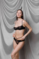 Entdecken Sie unser schwarzes Höschen, ein verführerisches Stück, das Eleganz und Sinnlichkeit ausstrahlt. Mit exquisiten häkelartigen Stickereien und durchsichtigem Mesh-Material, fügt dieser Tanga einen subtilen Hauch von Kühnheit zu Ihrer Dessous-Kollektion