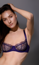Balconette bra with indigo embroidery
