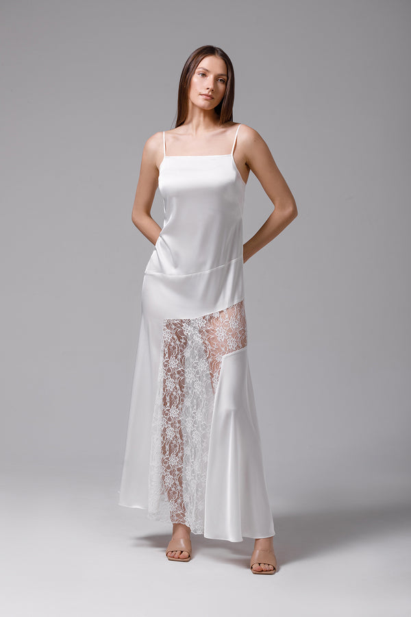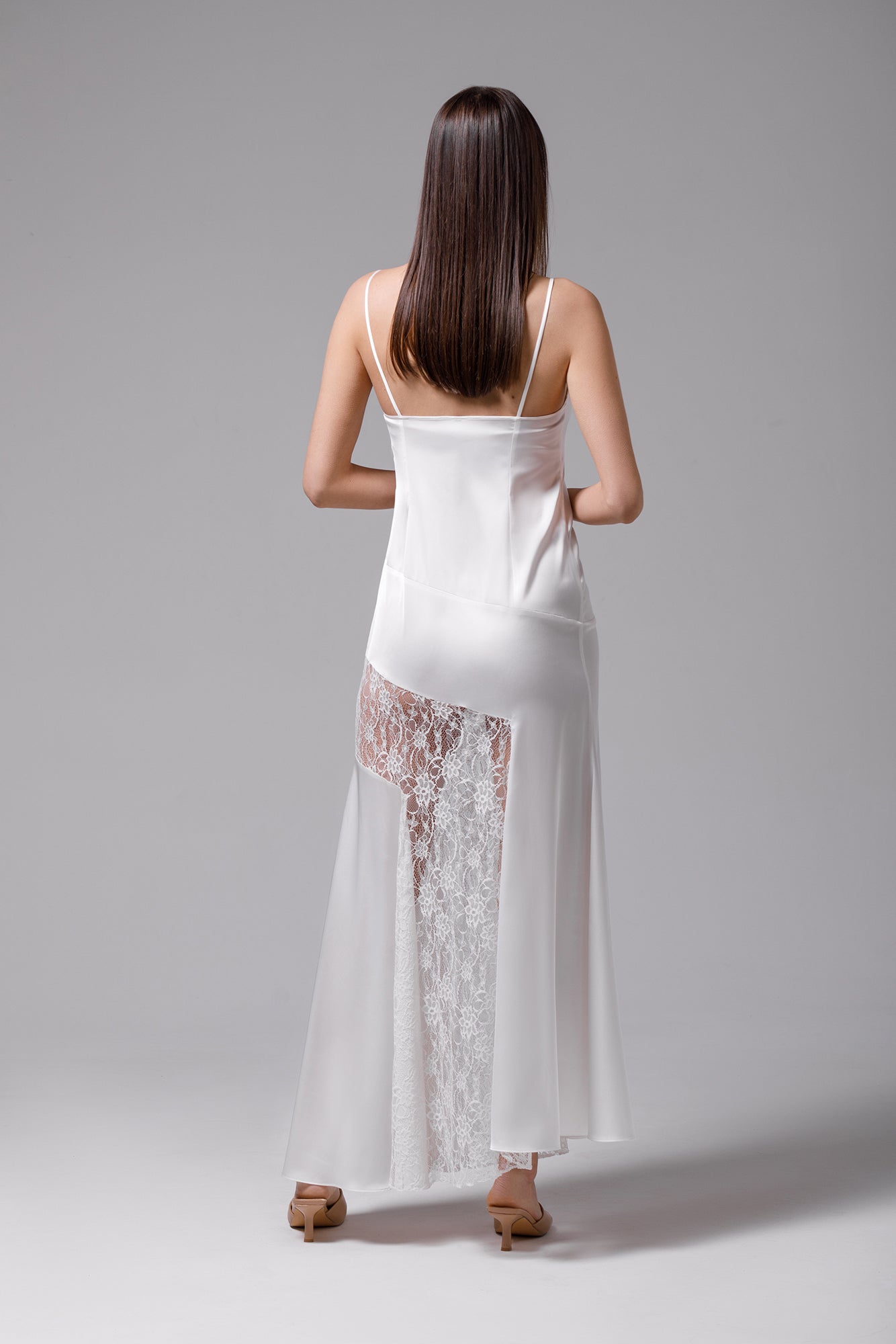 Diagonal cut charmeuse silk that sits beautifully on your body.