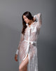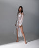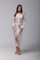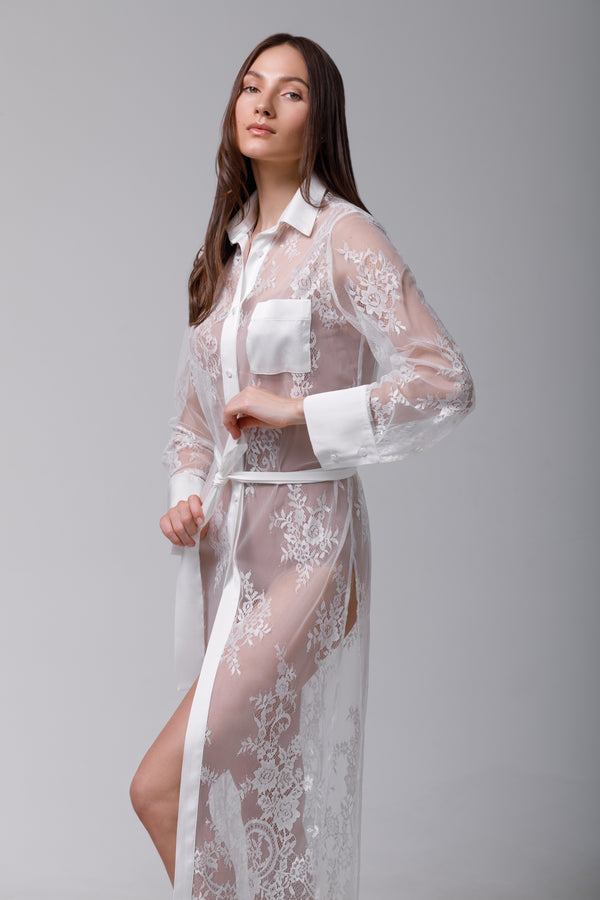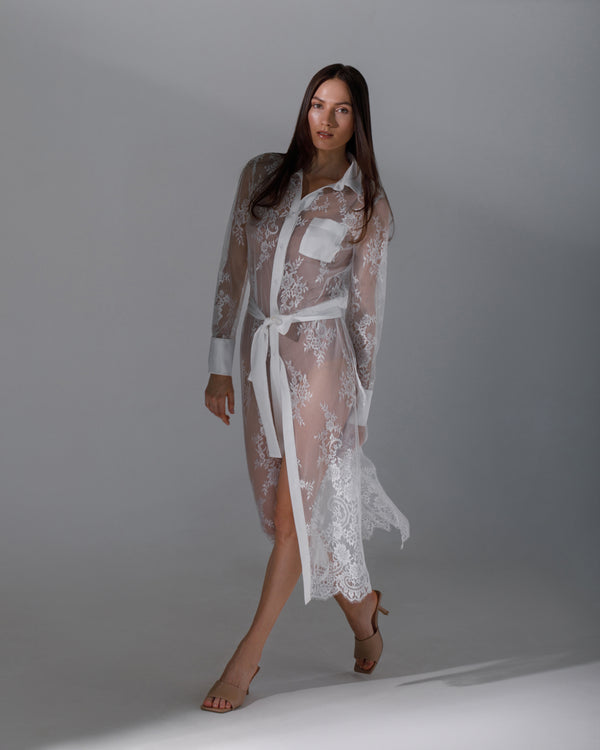 Discover elegance and sophistication in a dress detached shirtdress, made from high-quality white lace with delicate satin trim. This gown combines the classic charm of lace with the subtle luxury of satin to create a truly remarkable piece of clothing