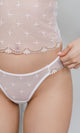 Discover the subtle charm of our little Ivory Lily lace top. Made from an extraordinarily soft stretch lace, this top exudes elegance and femininity. The scalloped edging with a flirty V-neck hem adds a subtle and alluring detail. The adjustable straps ensure a perfect fit, while the lack of padding lends a delicate and refined look. Complete your outfit with the matching Ivory Lily lace thong for a perfectly coordinated and eye-catching ensemble.