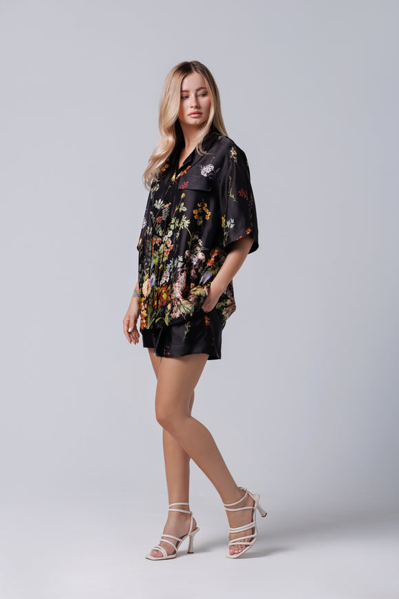 Short black shirt with floral print