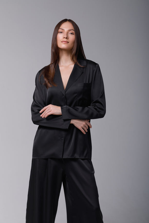 Black satin pyjama set