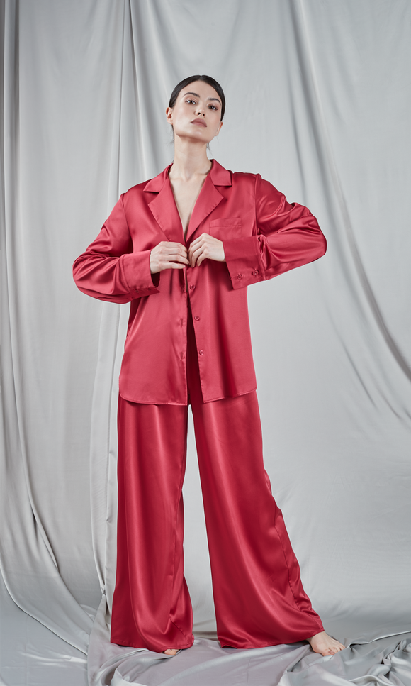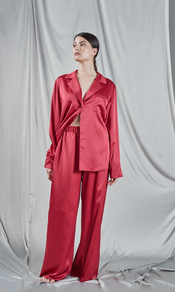 Burgundy satin pyjama set