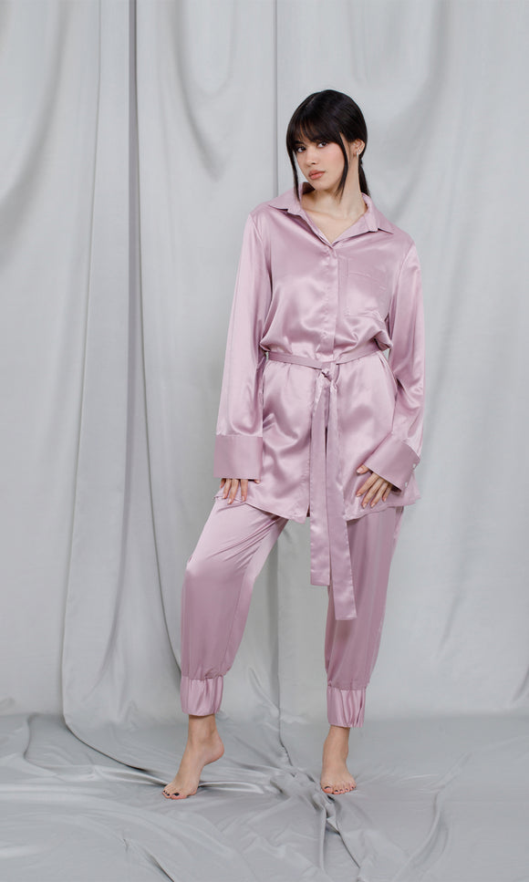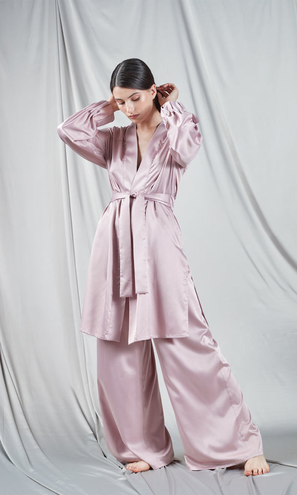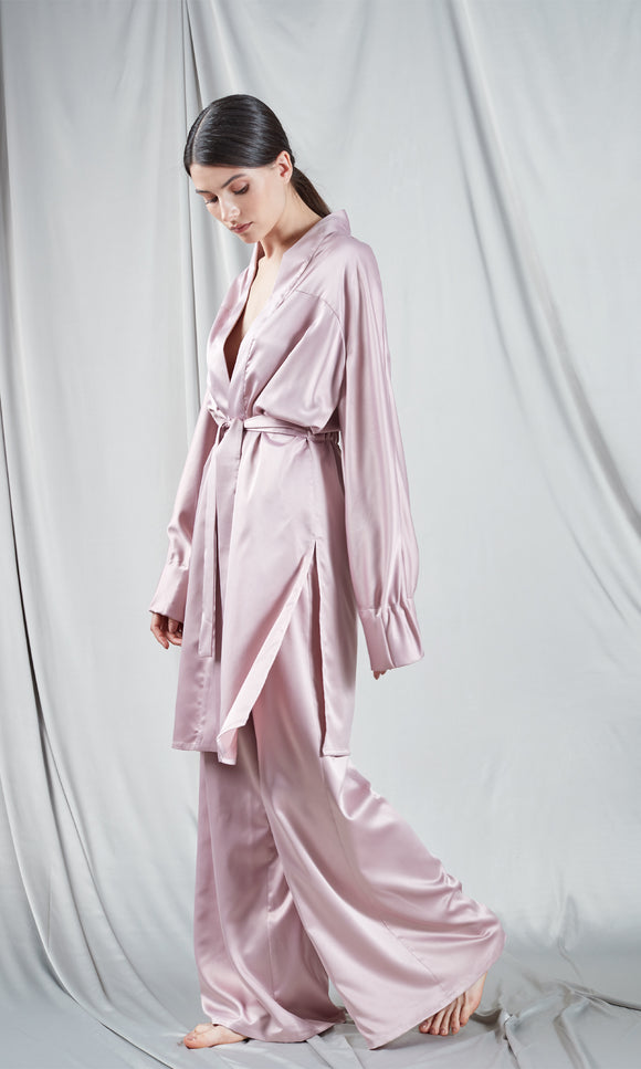 Long kimono in pale pink satin