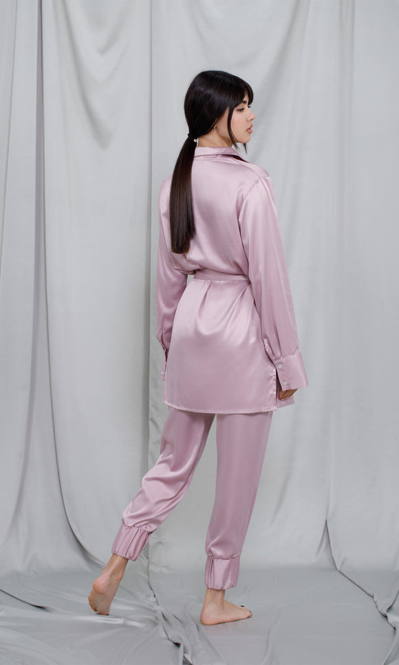 Pale pink satin satin pants