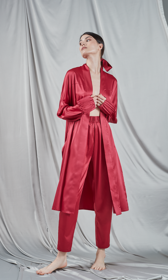 Short burgundy satin kimono