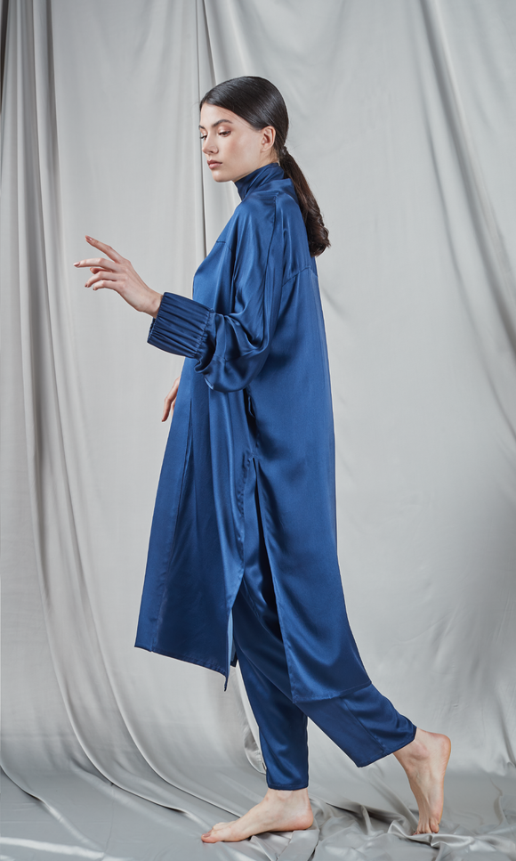Navy blue satin pyjama set