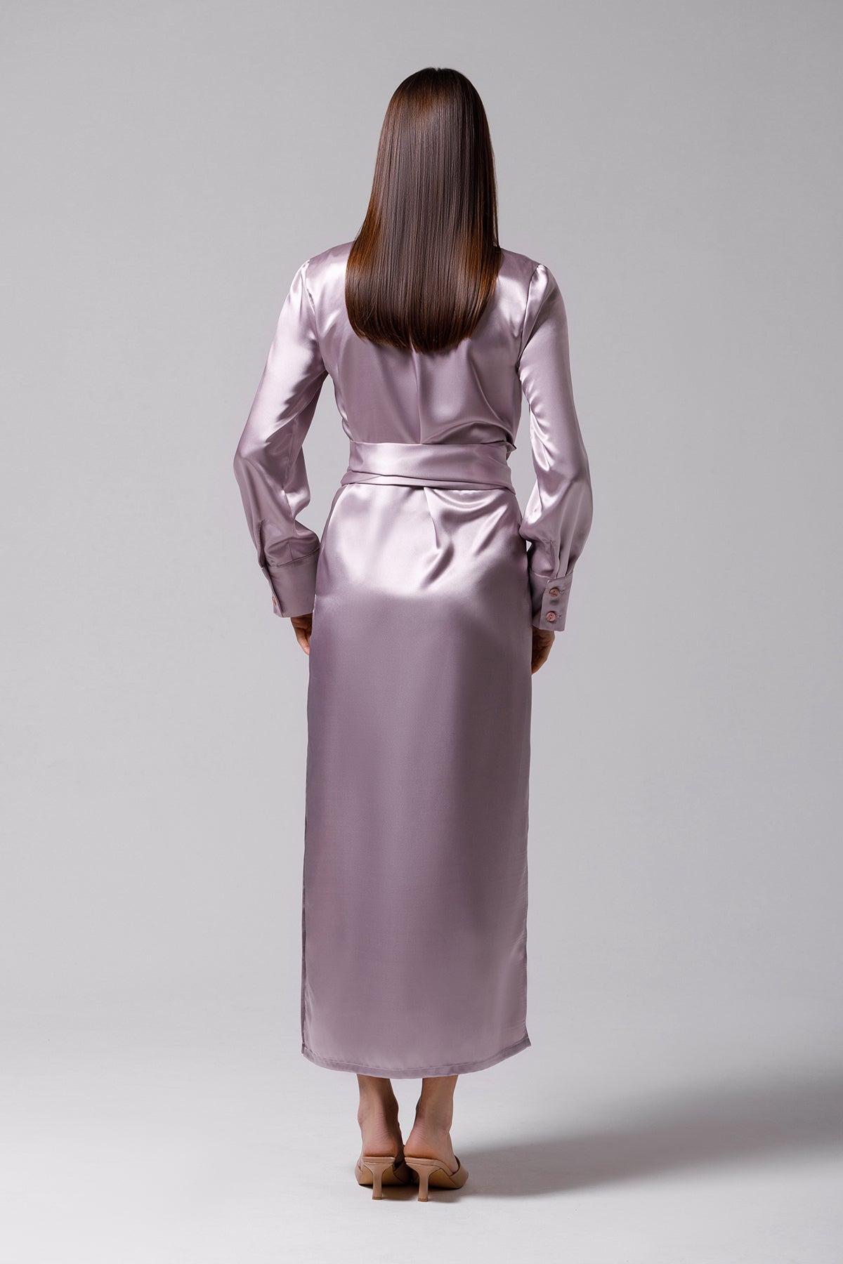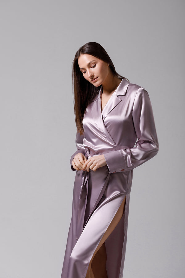 Our long kimono is the epitome of sophistication, with a classic layered silhouette and crossover lapels for a timeless look. The robe is tailored to fall gracefully over the body, with a slightly flared shape and side slits, offering comfort and style.