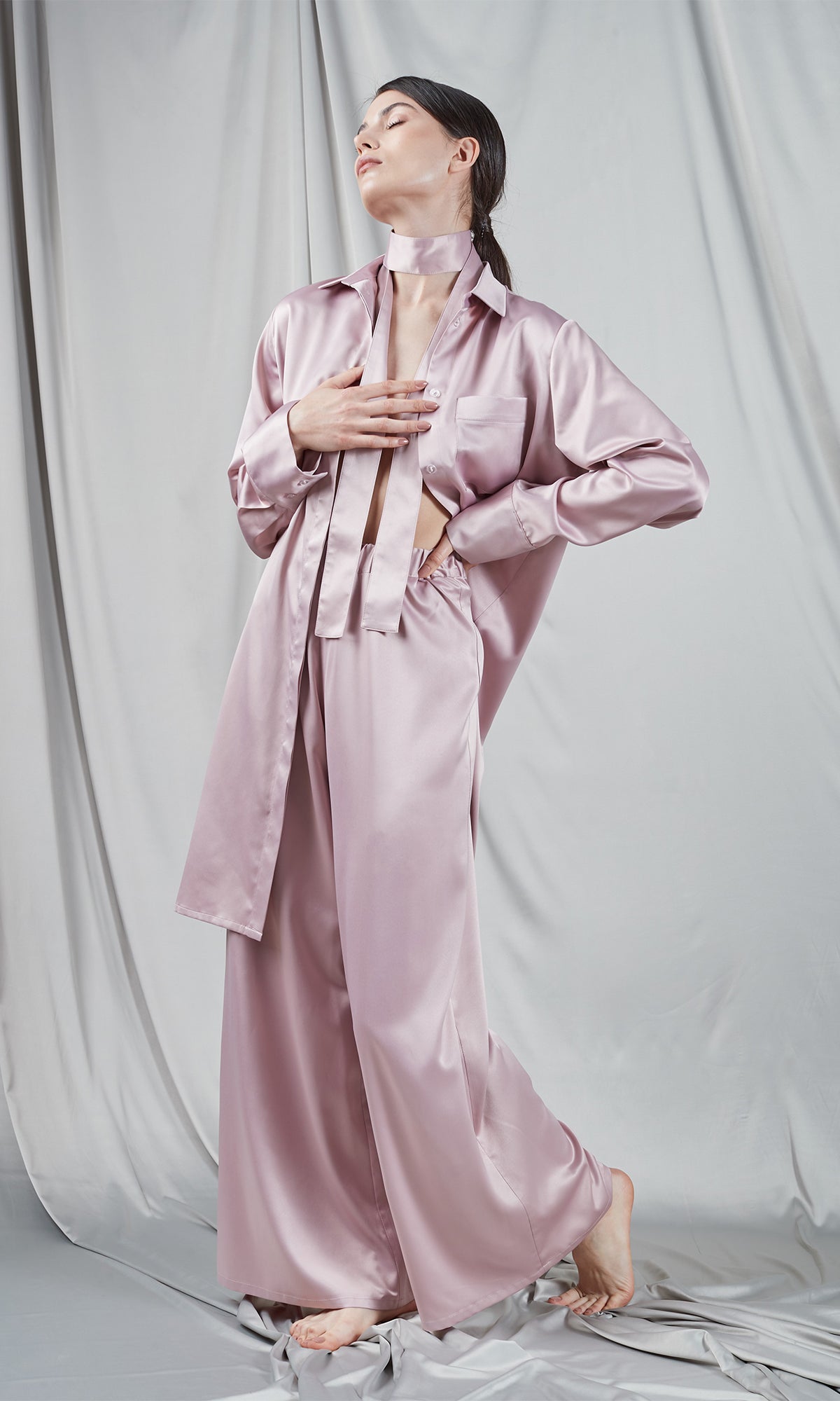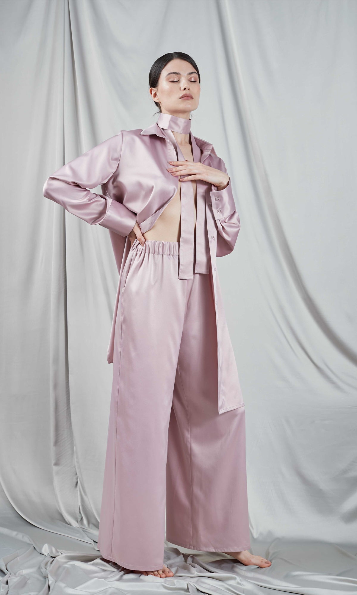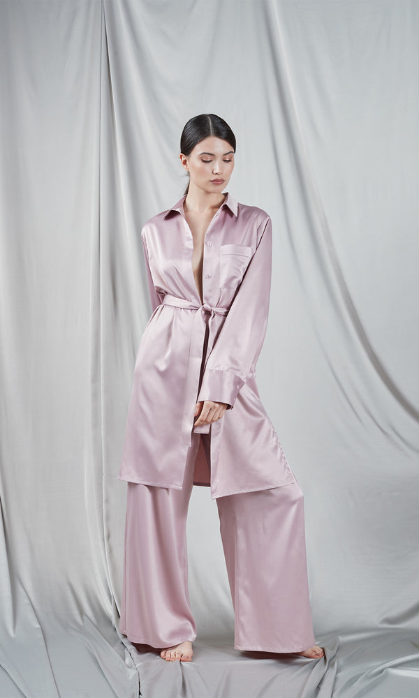 Dress in supreme comfort with our Palazzo Pink pants, crafted from the finest satin so soft you'll want to spend every moment in them. Equipped with an elastic waistband for a perfect fit, these pants are the definition of comfort and style. Pair them with one of our tops for a casual-chic look, or complete the ensemble with one of our coordinating bustiers or dressing gowns for a charming and sophisticated outfit