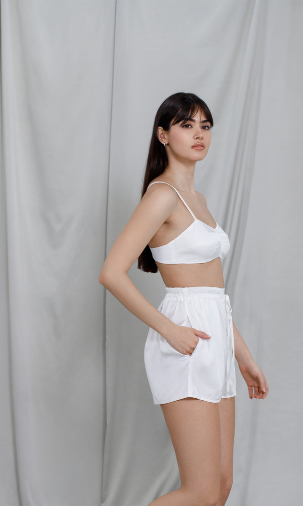 Ivory satin shorts