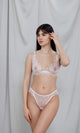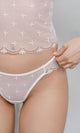 Panties made from a fine lace with a lily pattern in ivory shades, offering both comfort and a delicate, feminine look. The design combines the elegance of high quality materials with refined style, creating an essential piece of underwear for any wardrobe. Perfect to be worn under light colored or sheer clothing, they provide the discretion and comfort you need throughout the day