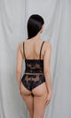 Schwarzer Schlüpfer mit Spitze und Blumendruck